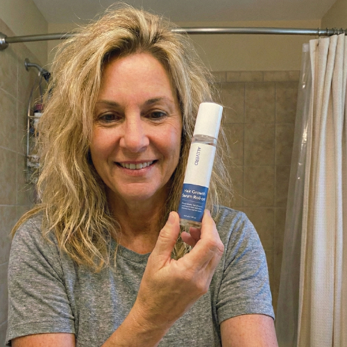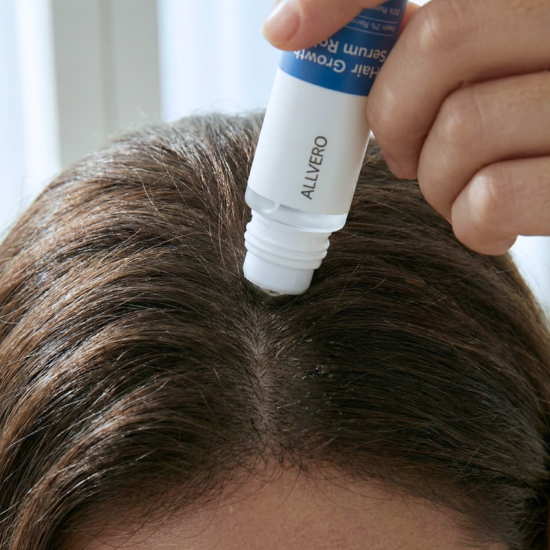 Roll the serum directly onto the scalp across thinning areas, part lines, or spots where you want stronger growth.